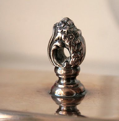 Charmingly tarnished, but would polish to a sleek silver sheen very easily.